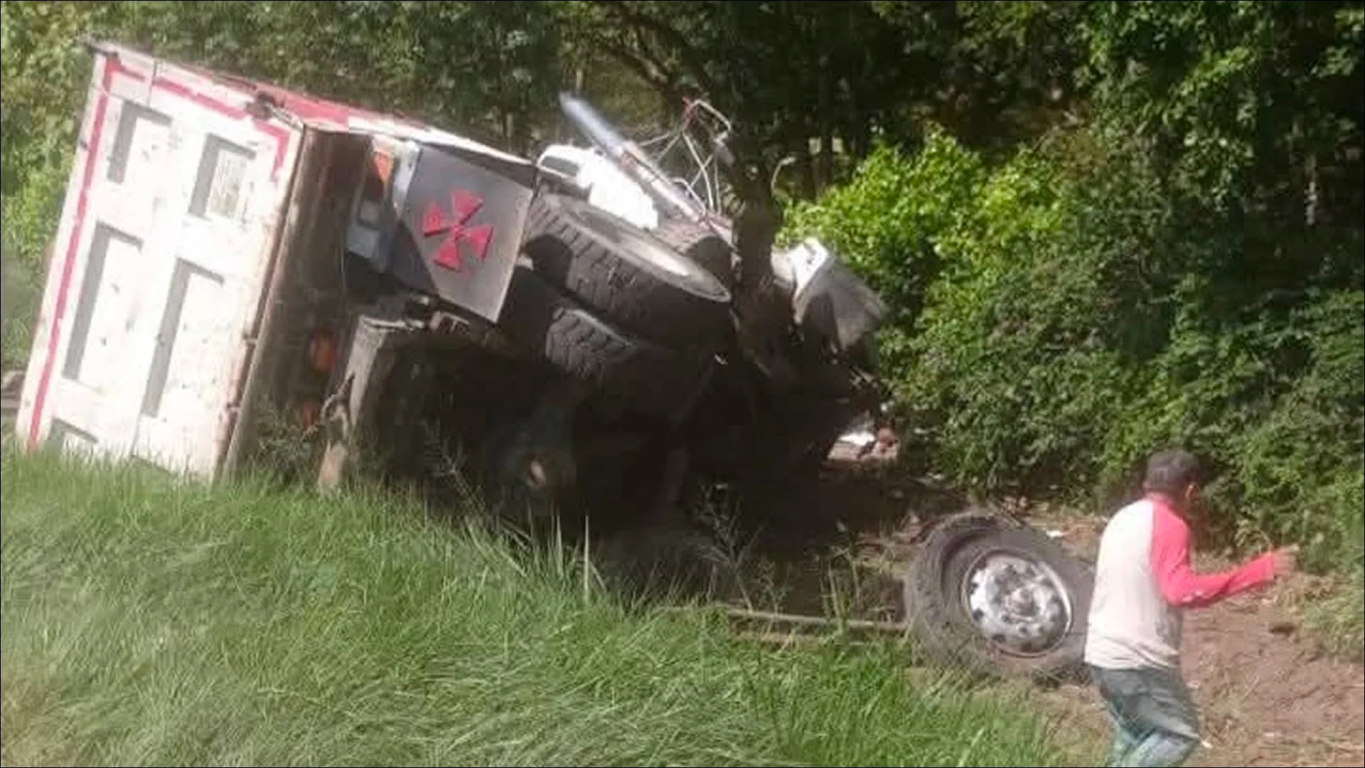 Se indicó que no hubo personas lesionadas. El conductor presentó contusiones y está siendo atendido por paramédicos en el sitio.